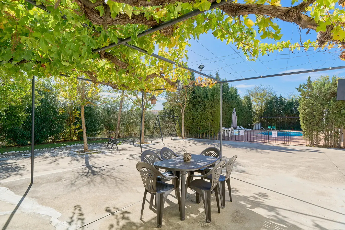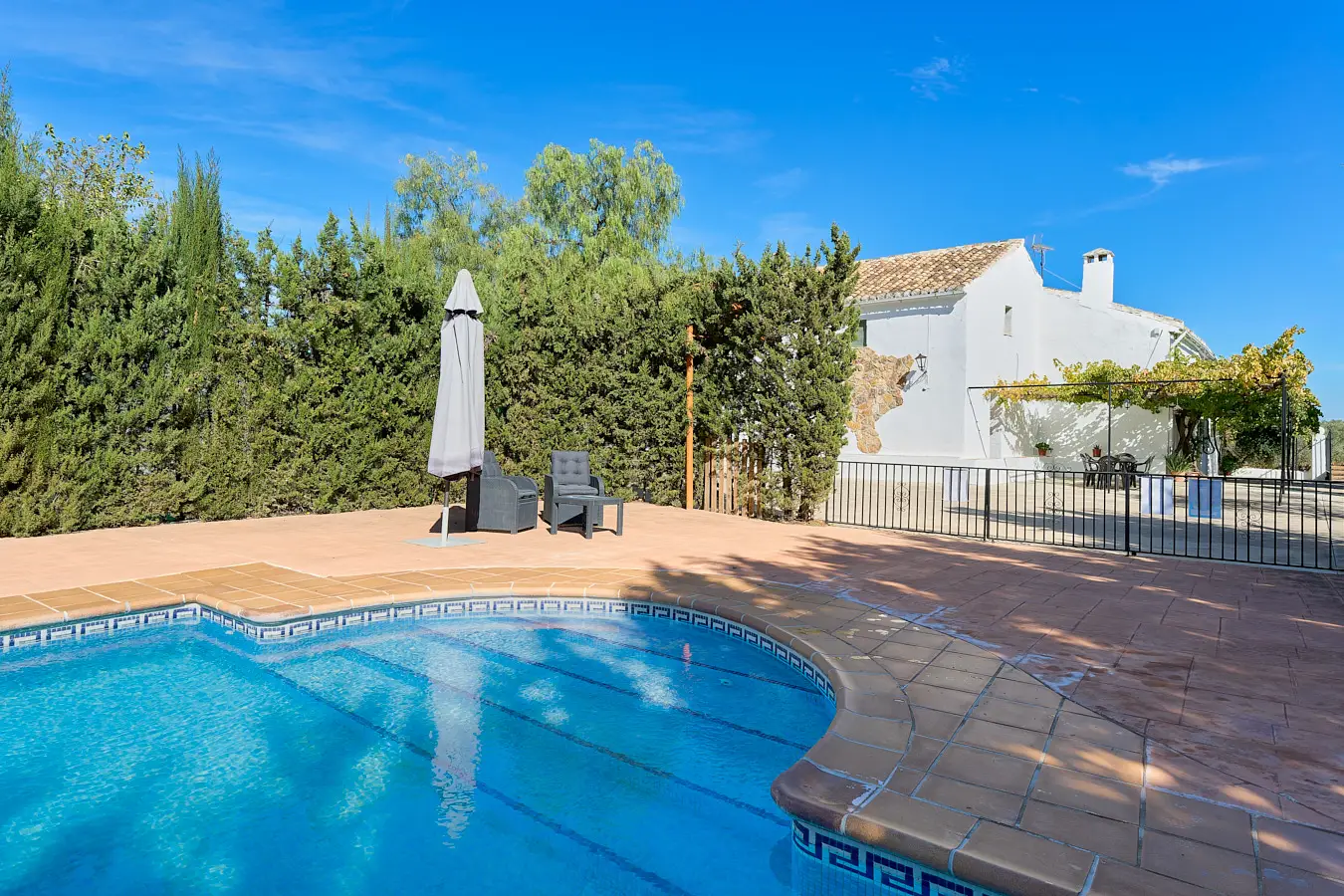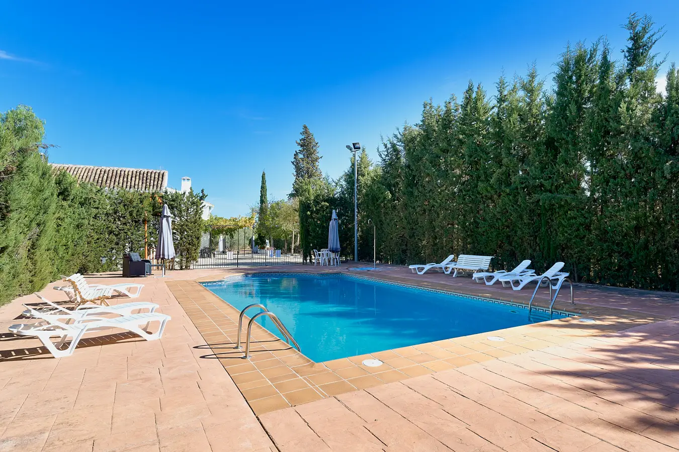 Disfruta de las zonas comunes que Cortijo Albornoz te proporciona, barbacoa, bar, piscina, canasta de baloncesto, baños exteriores, vistas espectaculares…
